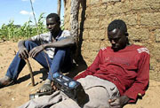 | Zimbabweans listen to a radio for an announcement of election results in Umguza April 1, 2008 (file photo). |