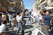 | A protester uses a shoe to beat a picture of Syria's President Bashar al-Assad during a protest organized by Lebanese and Syrians living in Lebanon, in solidarity8 with Syria's anti-government protesters, in the port-city of Tripoli, northern Lebanon, October 21, 2011. |