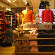 | Cashmere sweaters - usually priced at over $100 - selling for about $60 at Uniqlo in New York. |