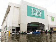 | Thai residents wade3 through floodwaters to buy food at a hypermarket in Bangkok, Thailand, October 27, 2011. |