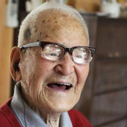 | Jirouemon Kimura, of Japan, smiles on his 114th birthday in April 2011. A new study finds happy people tend to live longer. |