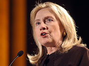 | US Secretary of State Hillary Clinton addresses the National Democratic Institute's 2011 Democracy Awards Dinner in Washington, November 7, 2011. |