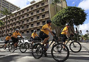 | Police officers patrol near the site of the upcoming Asia-Pacific Economic Cooperation (APEC) summit in Honolulu, Hawaii, November 8, 2011. |