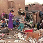 | Residents of the Cairo settlement of Manshiet Nasser collect garbage in the streets of the neighborhood. The settlement, populated by Egyptian Christians, is where Cairo, Africa's biggest city, dumps its garbage. Residents then sort it out. They are known as "zabbaleen", literally9 trash people, (File). |