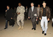 | U.S. Vice President Joe Biden, right, walks with the U.S. Ambassador to Iraq James Jeffrey, center, and General Lloyd Austin, the top U.S. commander in Iraq, 2nd left, after his arrival in Baghdad, Iraq, November 29, 2011. |