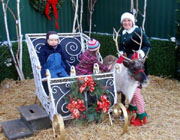 | Jingles11 the reindeer poses with owner Sonya Benhardt and young fans at Swanson's Nursery in Seattle, Washington. |