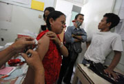 | A tuberculosis patient receives free treatment at the Indonesian Union Against Tuberculosis clinic in Jakarta, April 4, 2011. |