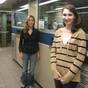 | Janice and Arielle Schacter at one of the New York subway information booths which is equipped with a hearing loop. |